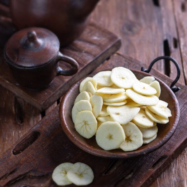 Also, it can be chipped by vacuum frying it. In this way, apple’s natural color, taste and nutrition can still be maintained and stay at it top state. Plus, vacuum fried apple chips are the right choice to complete your healthy lifestyle in a fun way.
